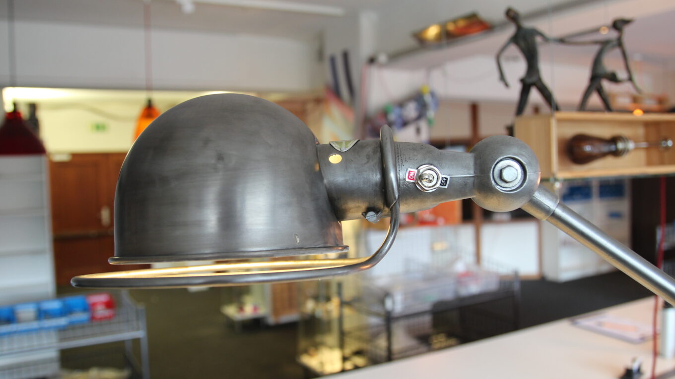 Reparatur einer Jielde Lampe aus den 1950er Jahren