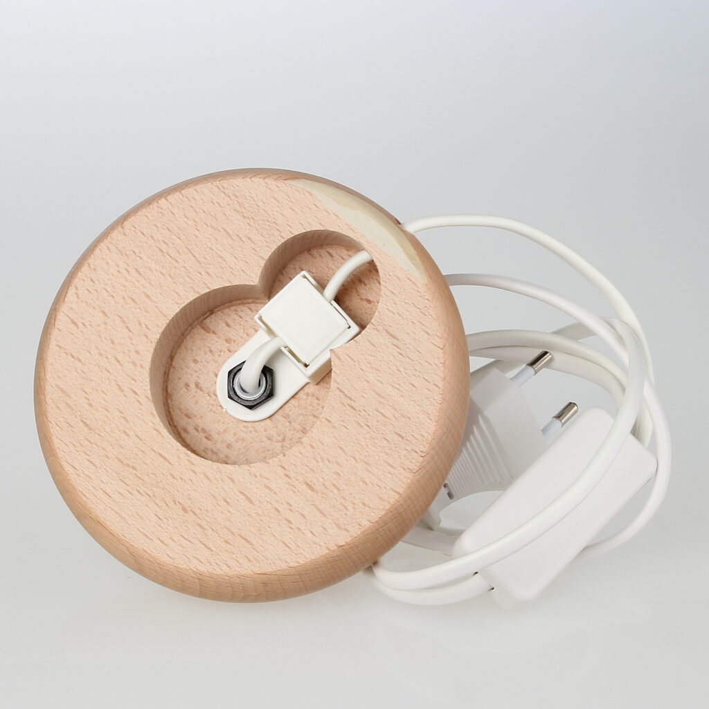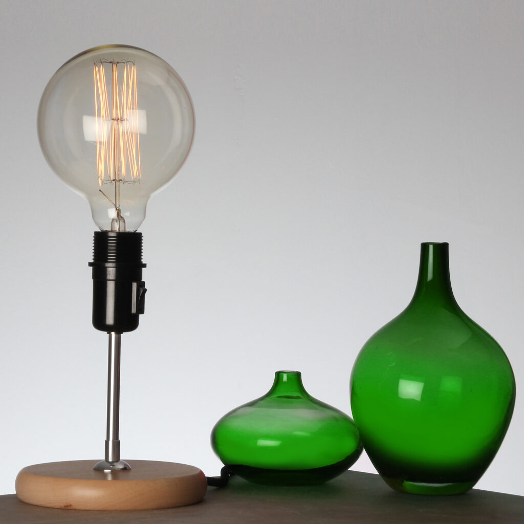 Mit einem Holzsockel lassen sich unterschiedliche Lampentypen realisieren, zum Beispiel: