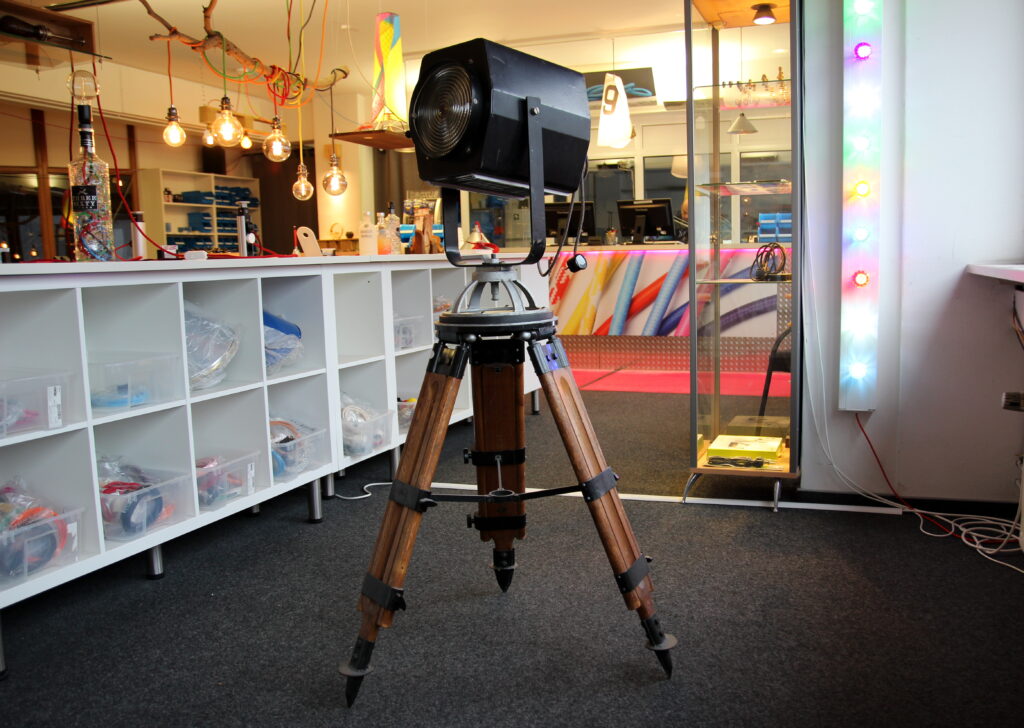 Vom Theater auf die Bühne des Wohnraums – Ein Bühnenscheinwerfer H 1000 S auf historischem Holzstativ