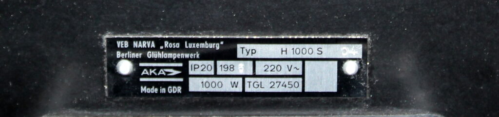 Für die heutige Nutzung wurde der Strahler technisch angepasst und auf ein modernes, alltagstaugliches Leuchtmittel umgerüstet. Dadurch bleibt der originale Look erhalten, während die Wärmeentwicklung und Leistungsaufnahme reduziert werden.
