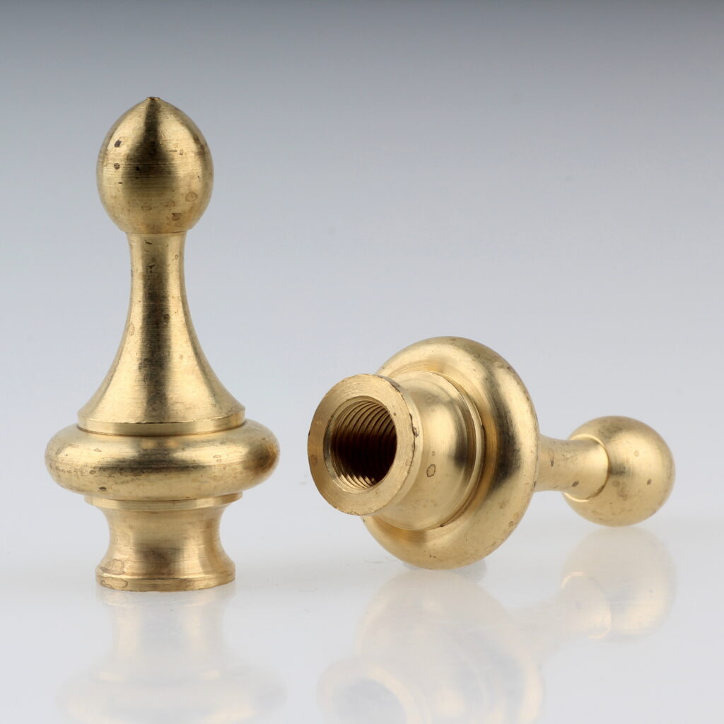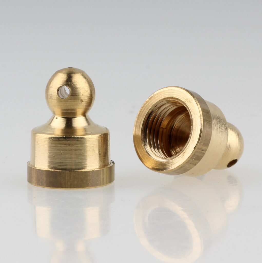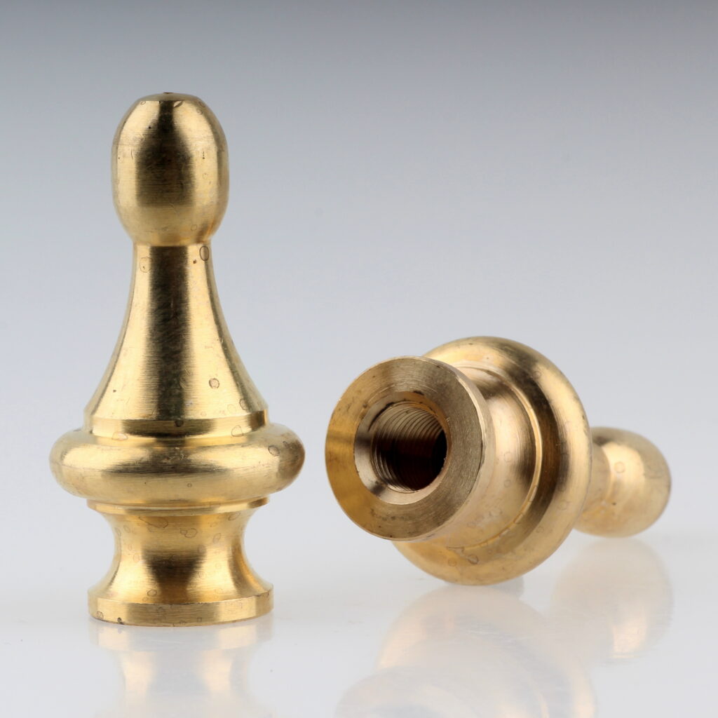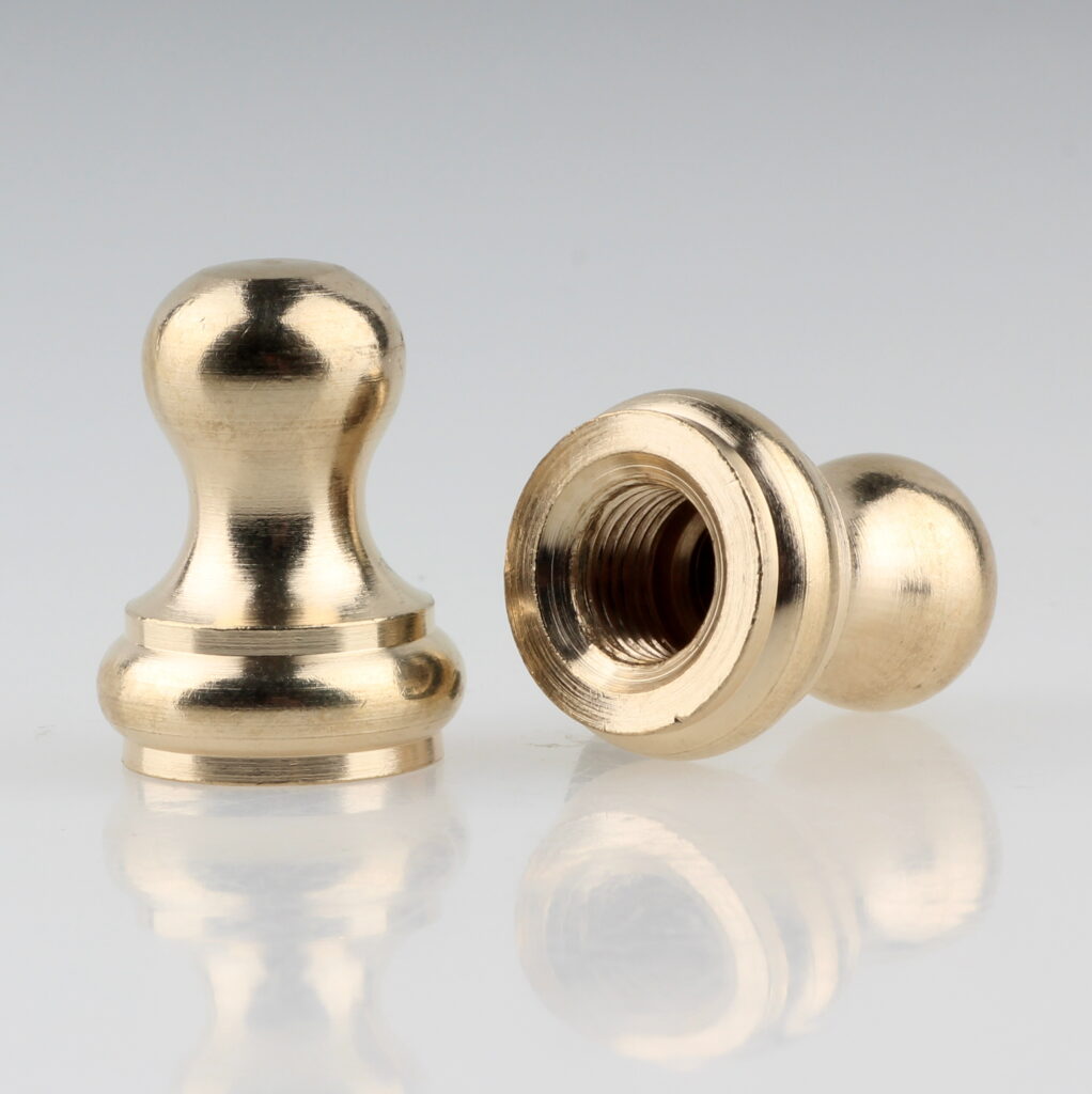 Messing-Abschlussknöpfe lassen sich mit vielen typischen Bauteilen aus dem Leuchtenbau kombinieren.
