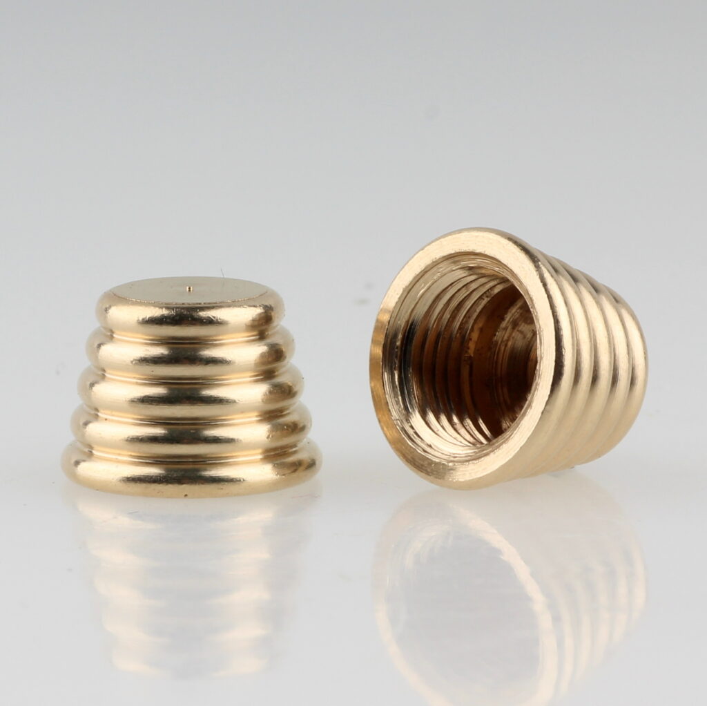 Diese kleinen, präzise gefertigten Bauteile sorgen für einen sauberen Abschluss von Gewindeverbindungen und werden eingesetzt, um sichtbare Gewindeteile optisch zu verdecken oder dekorativ zu gestalten. Besonders bei hochwertigen Lampen oder restaurierten Designleuchten sind solche Details entscheidend für ein harmonisches Gesamtbild.